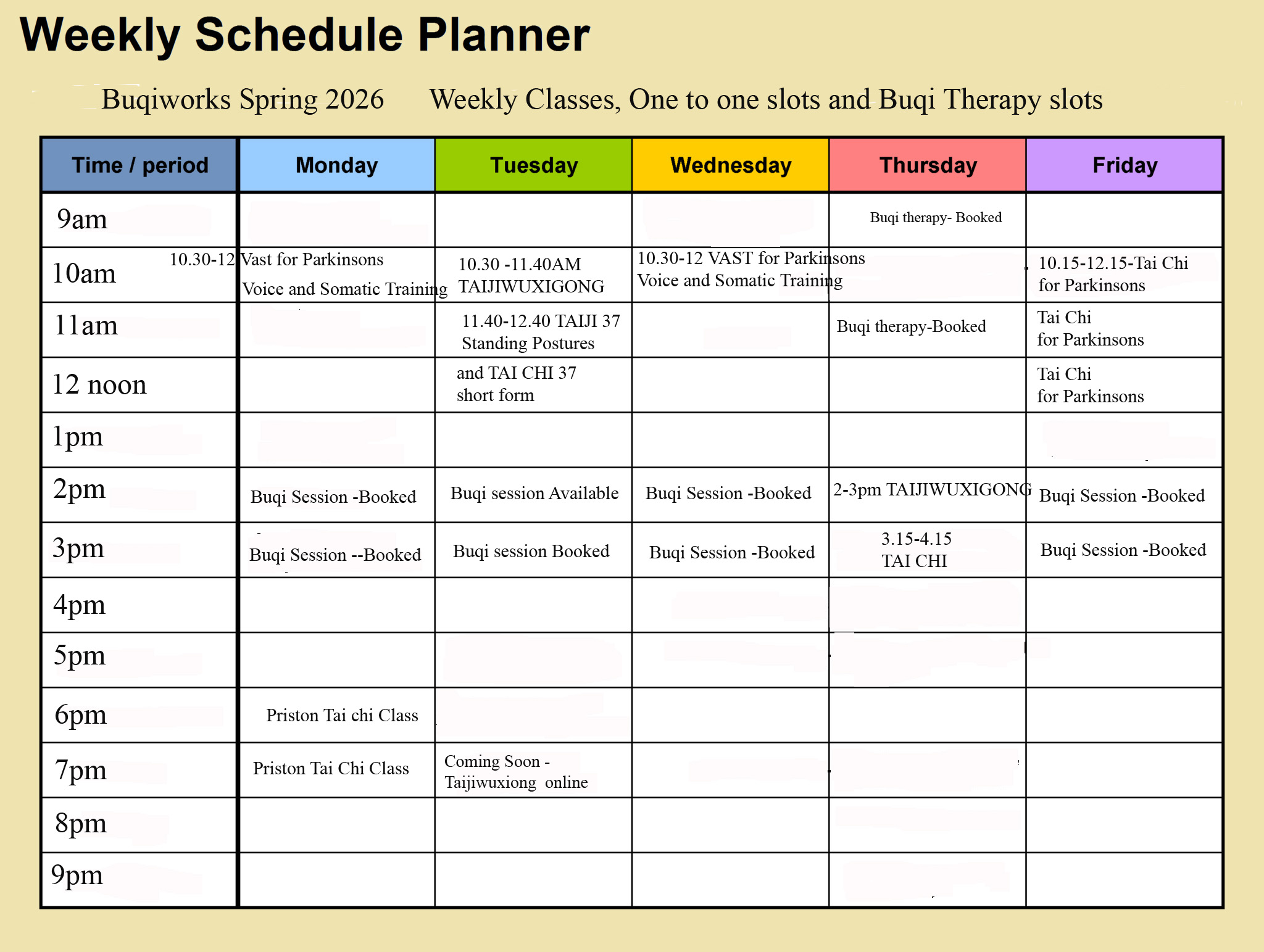 - 2-3 pm One to One Buqi (Booked at present)